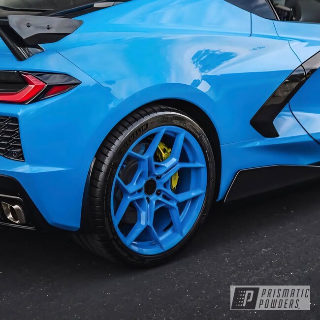 Corvette Wheels were repaired and refinished powder-coated Velocity Blue.
